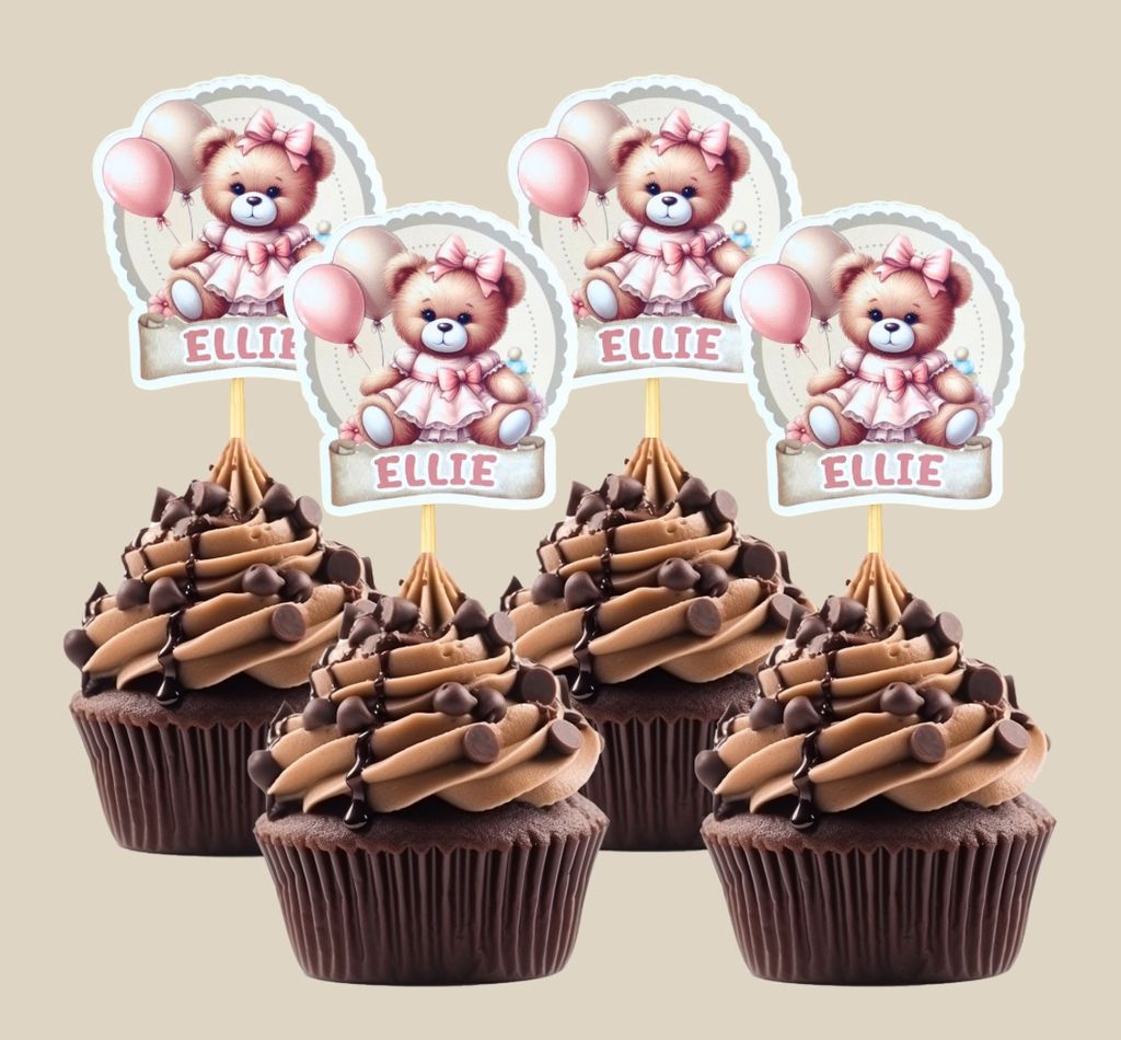 Peronliga Cake picks med ett valfritt namn. Söta dekorationer för dina bakverk. Fina att sätta i cupcakes, chokladbollar, brownies, bullar mm. En förpackning innehåller 12 st toppers.