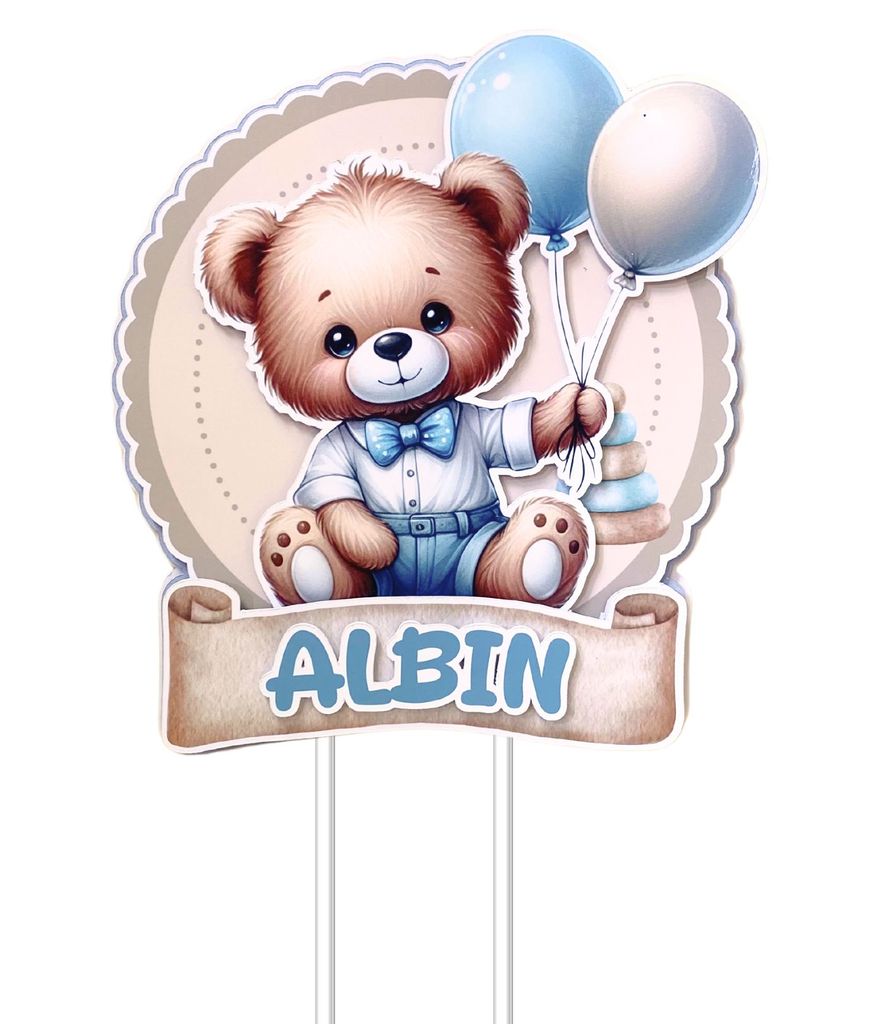 Handgjord personlig caketopper i flera lager med ett valfritt namn. Kommer på två transparenta akrylpinnar för enkel montering i din tårta.